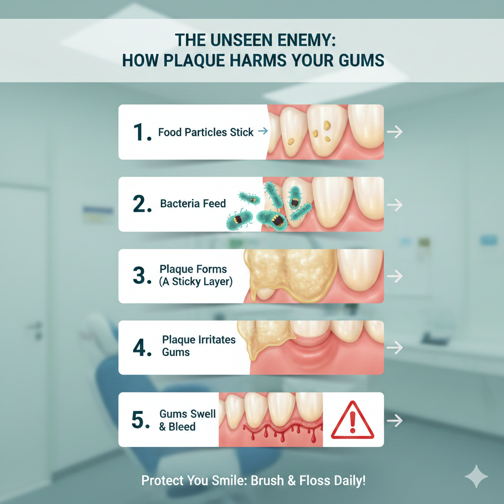 Your gums are irritated because bacteria have settled below the gum line. This isn’t dramatic. It’s common. And that’s exactly why people underestimate it.